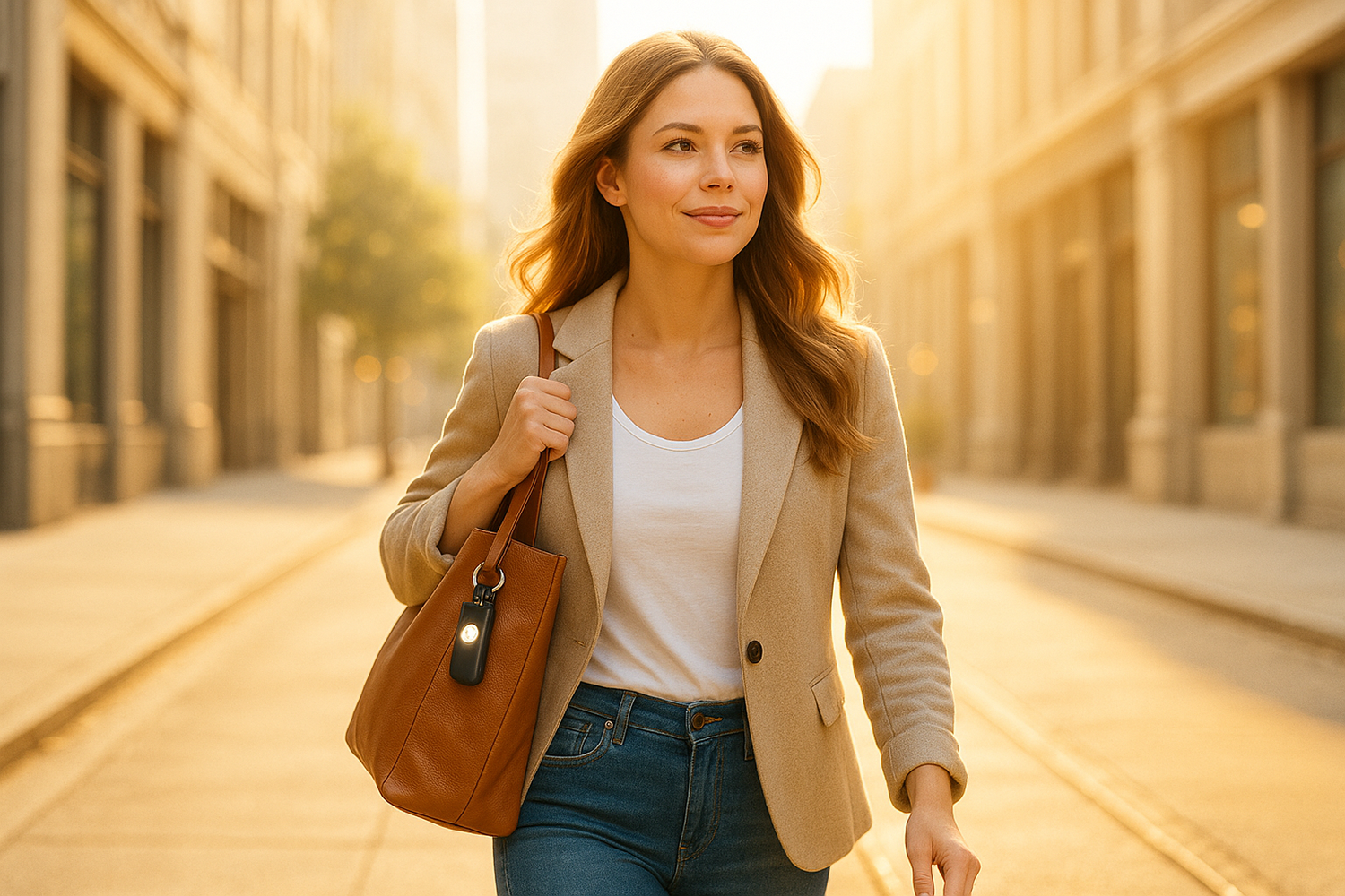 <<The build quality is great — lightweight yet solid. I tested it, and the sound is piercing! I keep it on my bag everywhere I go. Every woman should have one of these.>>